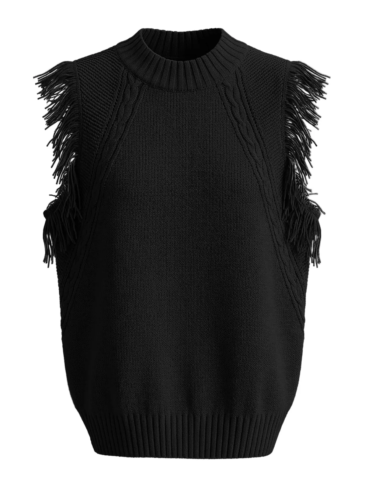Design: Geribbelde kraag, Rechte zoom, Geribd ceintuurtje; Materiaal: Knitwear; Halstype: Opstaande kraag; Motief: Effen; Details: Franjes; Extra's: Met textuur, Voelt zacht aan; Pasvorm: Normale pasvorm; Armlengte: Mouwloos; Lengte: Normale lengte