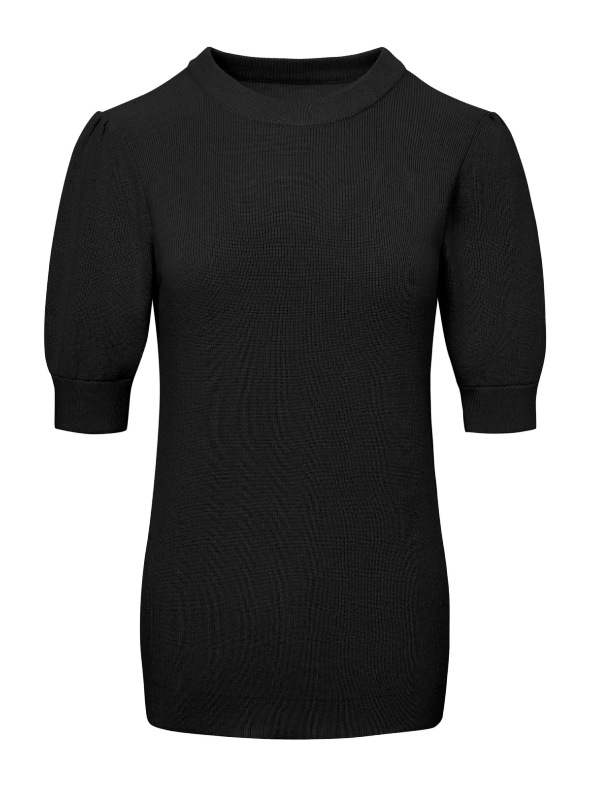 Design: Geribbelde kraag, Pofmouwen, Geribd ceintuurtje; Materiaal: Knitwear; Halstype: Ronde hals; Motief: Effen; Details: Gedrapeerd; Extra's: Op staal naden, Voelt zacht aan; Pasvorm: Normale pasvorm; Armlengte: Halve mouw; Lengte: Normale lengte