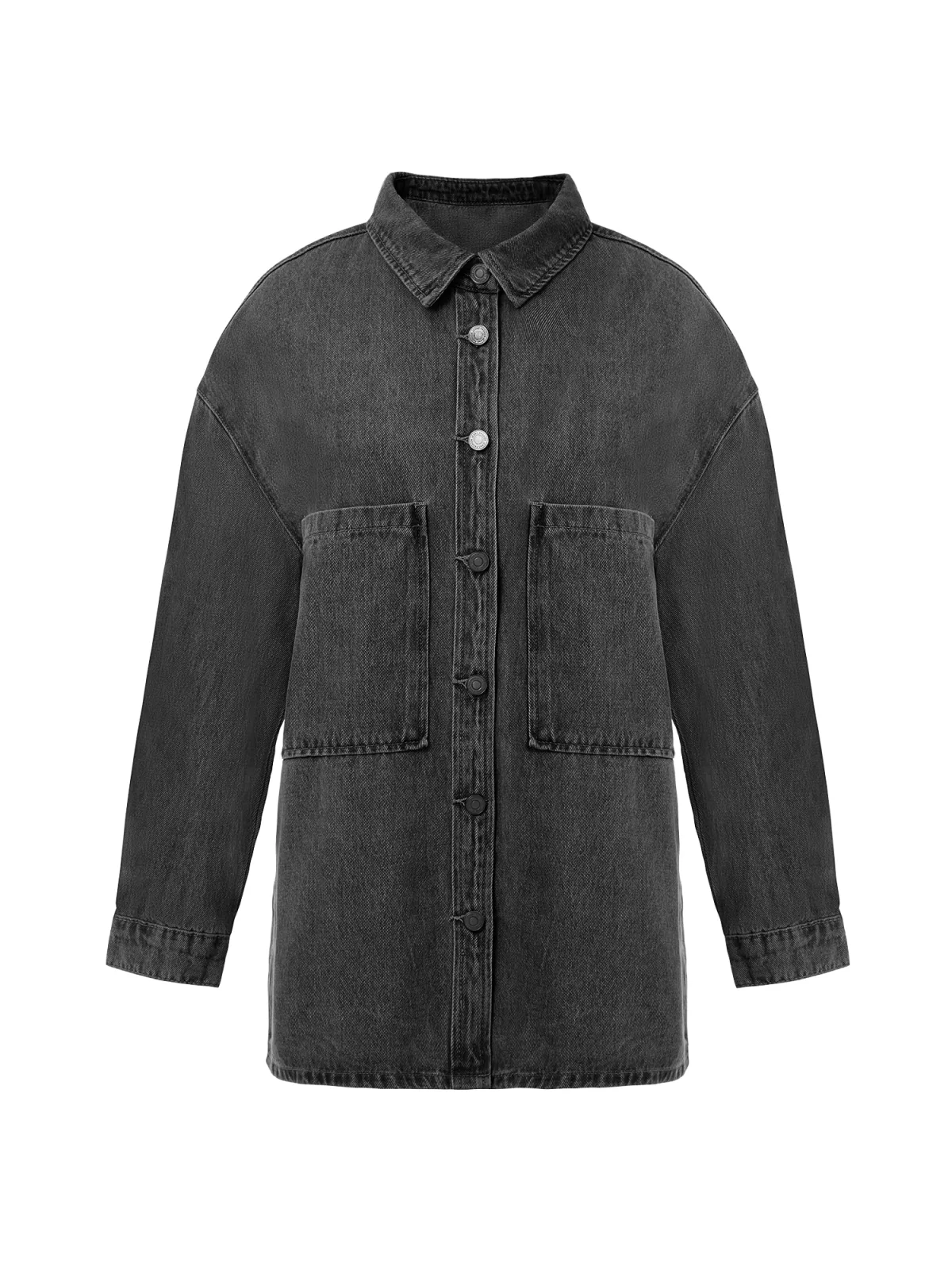 Design: Knop placket, Overcut schouder, Borstzak; Type sluiting: Knoopsluiting; Voering: Niet gevoerd; Materiaal: Denim; Motief: Effen; Extra's: Op staal naden, Stevige stof; Pasvorm: Losse pasvorm