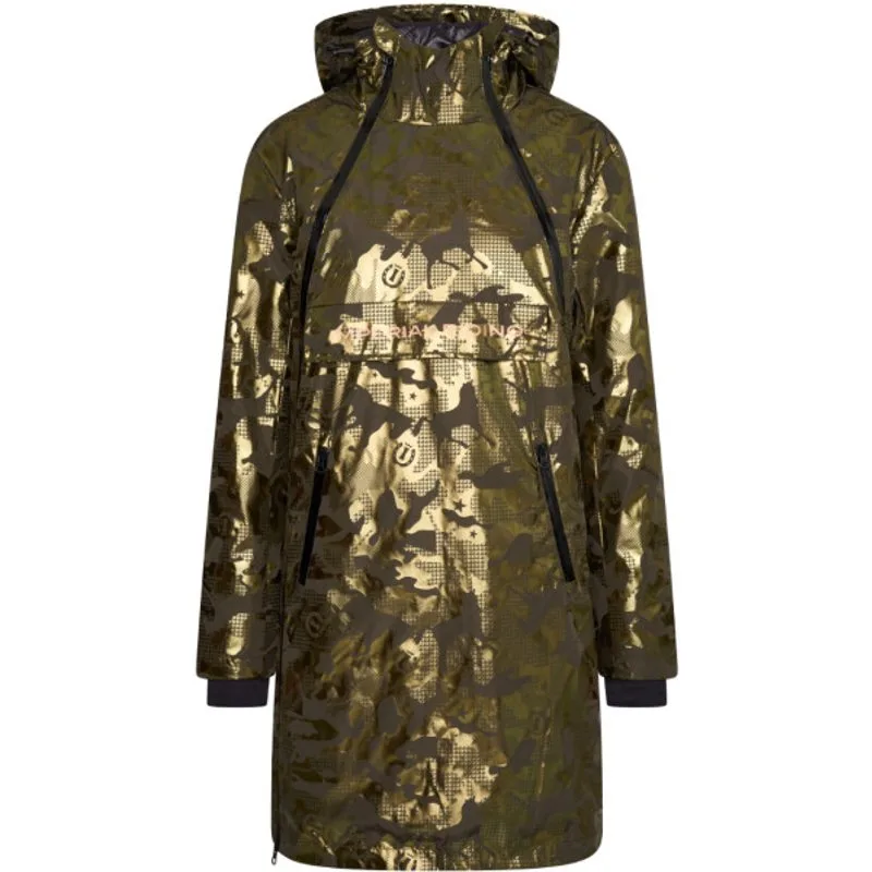 Als je een statement wilt maken ... dan is de anorak Dalia jouw jack! Dit type jack heeft echt alles. Het is water- en windbestendig en heeft een capuchon met trekkoord. Met twee ritsen aan de voorkant zodat het eenvoudig aan en uit kan tijdens het rijden. Het zit hem in de details. Dit model heeft een heel chique badge op de linkermouw. Metallic print in de vorm van Imperial Riding-letters. Met dit anorak-jack met camouflage-alloverprint ben jij de coolste ruiter van allemaal! 100% Polyester
