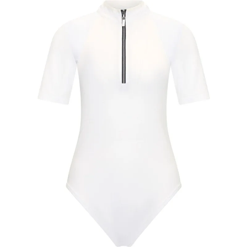 Halfrits mouwloze technische body * Gaasvlakken * Kleine drukknopen voor kruissluiting * Opstaande kraag