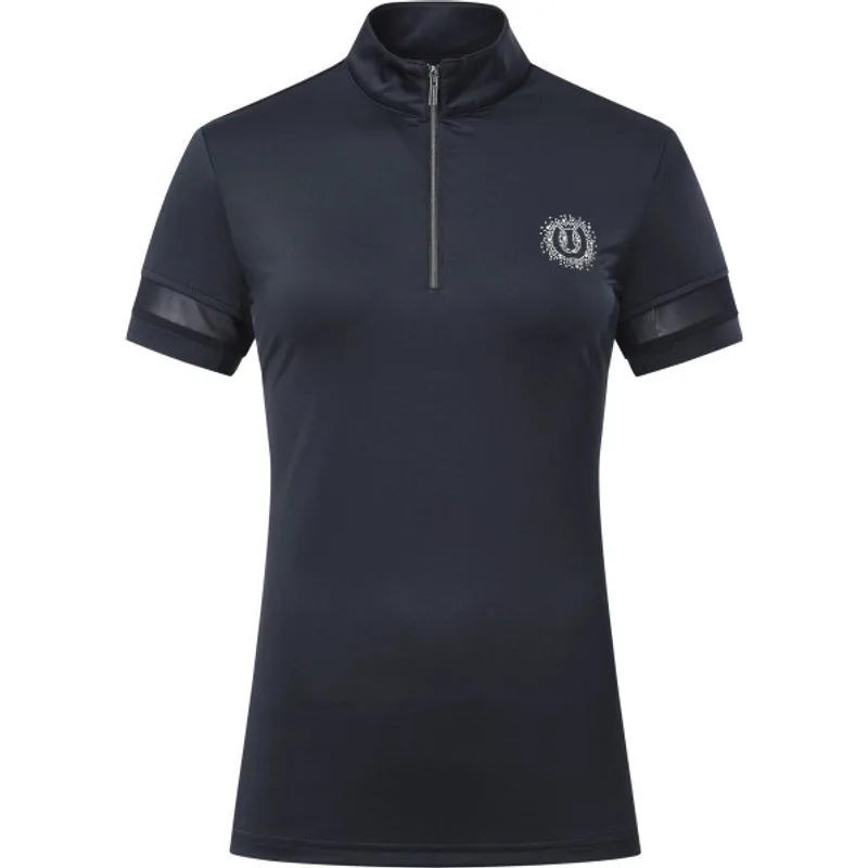 Halve ritssluiting top * Opstaande kraag * Korte mouwen met mesh inzetstukken * Strass kunstwerk op de borst aan de linkerkant * Merklabel Shell 1 : 92% Polyester, 8% Elastane Shell 2 : Mesh