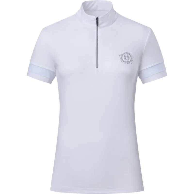 Halve ritssluiting top * Opstaande kraag * Korte mouwen met mesh inzetstukken * Strass kunstwerk op de borst aan de linkerkant * Merklabel Shell 1 : 92% Polyester, 8% Elastane Shell 2 : Mesh
