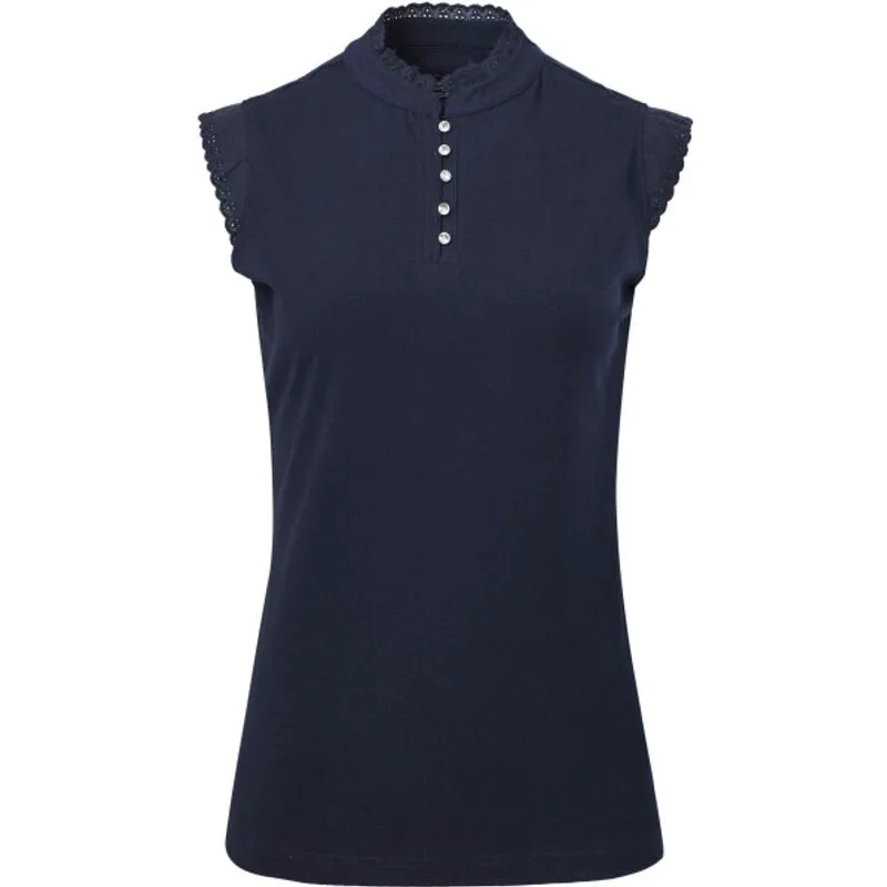 Mouwloze top * CF-sluitbies met knopen met strass * Kleine kraagstand met kanten detail * Armsgat met kanten detail * Glitterprint Imperial riding tekst onderaan aan de linkerkant * Foliedruklogo in CB. Shell 1 : 95% Cotton, 5 % Elastane Shell 2 : Stretch lace