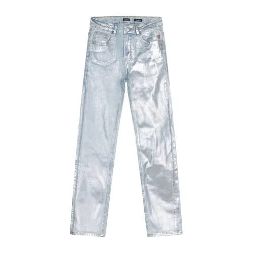 Indian Blue Jeans coated straight leg jeans zilver metallic