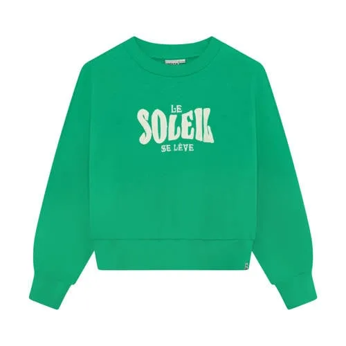 Voor dagelijks gebruik is deze Indian Blue Jeans meisjes sweater van katoen een praktische optie. De sweater heeft een tekstprint op de voorkant en subtiele borduursels die voor een verzorgde uitstraling zorgen. Door de ronde hals en de rechte mouwen valt het model soepel en voelt het comfortabel aan, geschikt voor schooldagen en ontspannen momenten thuis.Comfortabele basic met speelse details Gemaakt van 100% katoen, wat zacht aanvoelt en prettig draagt op de huid Lange mouwen met geribde boorden voor een stevige pasvorm rondom polsen en taille Ronde hals die makkelijk over het hoofd gaat en niet knelt Tekstprint met borduursels als opvallend detail op de voorkant Geen sluiting en geen zakken, waardoor het silhouet rustig blijft Rechte mouwen voor een eenvoudige, klassieke uitstralingGeschikt voor elke dagDeze sweater is ontworpen voor alledaags gebruik. De neutrale basis komt goed tot zijn recht bij verschillende gelegenheden, van lesdagen tot ontspanning thuis. Door de rechte mouwen en de geribde boorden blijft de sweater goed zitten, ook tijdens actief spelen of bewegen op school.Indian Blue Jeans in bewegingIndian Blue Jeans ontwerpt kleding waarin kinderen vrij kunnen bewegen. De focus ligt op sterke stoffen, draagcomfort en herkenbare details. Zo ontstaat kinderkleding die aansluit bij een actieve dag en die er na vaak wassen nog steeds verzorgd uitziet.Een sweater die praktisch is in gebruik en zorgt voor een verzorgde, kindvriendelijke stijl.
