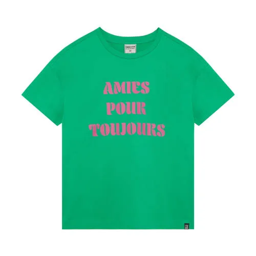 Dit groene Indian Blue Jeans T-shirt meisjes is een fijne basic voor elke dag. De zachte katoenen stof voelt prettig aan op de huid en de korte mouwen maken het shirt geschikt voor allerlei seizoenen. De tekstprint aan de voorkant geeft het T-shirt een speelse, eigentijdse uitstraling die goed past bij een moderne meidenstijl.Comfortabel T-shirt met tekstprint Gemaakt van 100% katoen voor een zachte, soepele touch Korte, rechte mouwen voor een casual en luchtig silhouet Ronde hals die comfortabel aansluit zonder te strak te zitten Groene kleur met tekstprint voor een frisse, moderne look Geen zakken voor een rustige en overzichtelijke voorkant Per stuk geleverd, handig als favoriet shirt in de kastMakkelijk combineren met haar favoriete outfitsDit T-shirt is eenvoudig te combineren met jeans, een shorts of een rok. In de zomer kan het los gedragen worden op een korte broek, terwijl het in koudere maanden ook goed onder een vest of spijkerjasje past. Zo is het shirt het hele jaar door inzetbaar.Indian Blue Jeans: eigentijdse stijl voor kidsIndian Blue Jeans maakt kleding speciaal voor kinderen die houden van mode en comfort. De ontwerpen zijn geïnspireerd op actuele trends, maar blijven praktisch voor school, spelen en vrije tijd. Met aandacht voor pasvorm en materialen zorgt het merk voor kleding waarin kinderen zich prettig kunnen bewegen.Een luchtig, veelzijdig T-shirt waar zij zich de hele dag vrij in kan voelen.