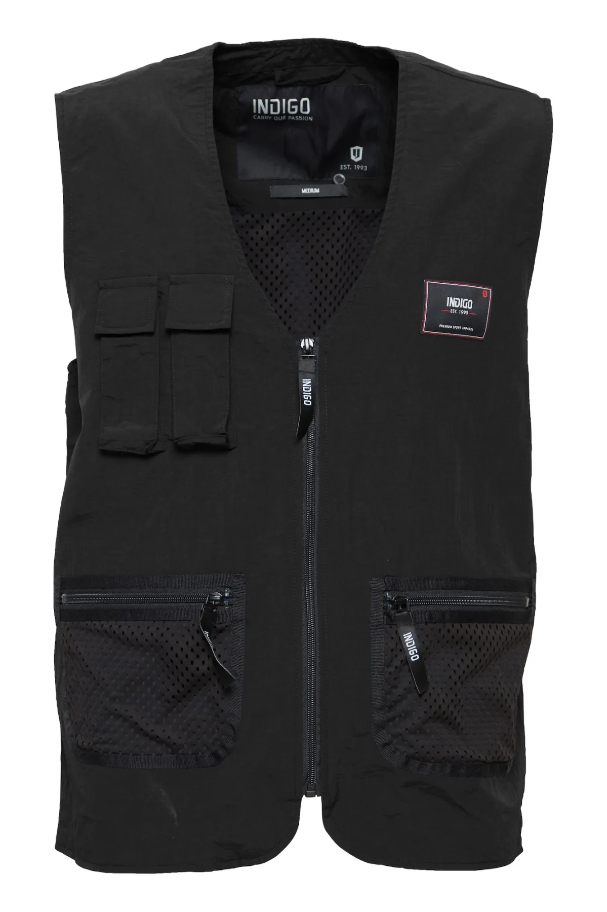 Specificaties: INDICODE JEANS Bodywarmer ‘Piet’ rood / zwart / wit
