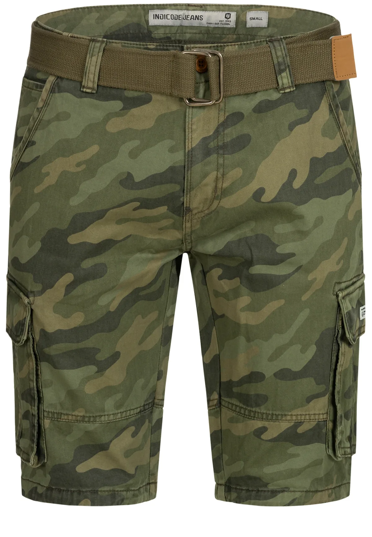Design: Ritssluiting, Gevoerde zoom/rand, Cargozak, Achterzak, Met riem, Muntenzak, Opzet-/flapzak, Zakken aan de zijkant, Knop sluiting; Materiaal: Katoen; Motief: Camouflage; Extra's: All-over patroon, Label patch/label flag, Stevige stof, Voelt zacht aan; Lengte: Knielengte; Pasvorm: Regular