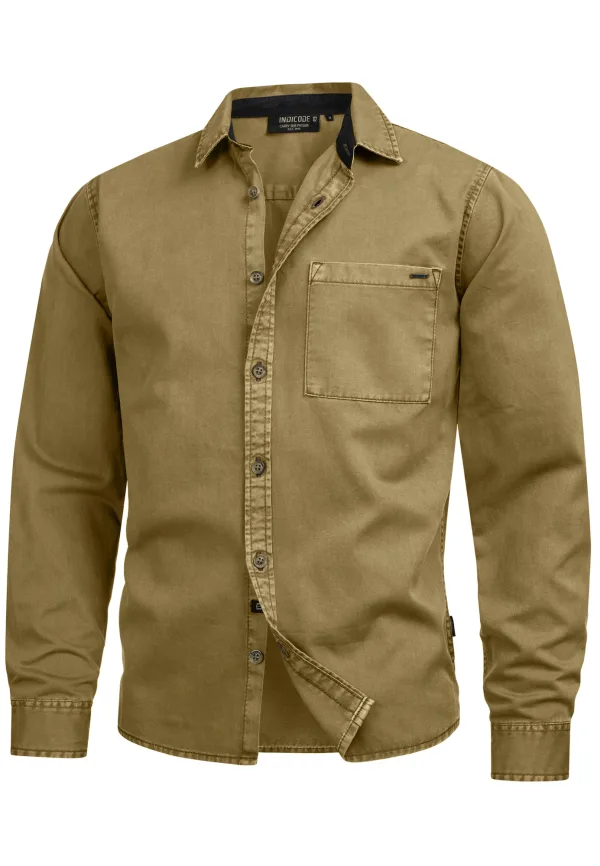 INDICODE JEANS Overhemd ‘Broidy’ olijfgroen