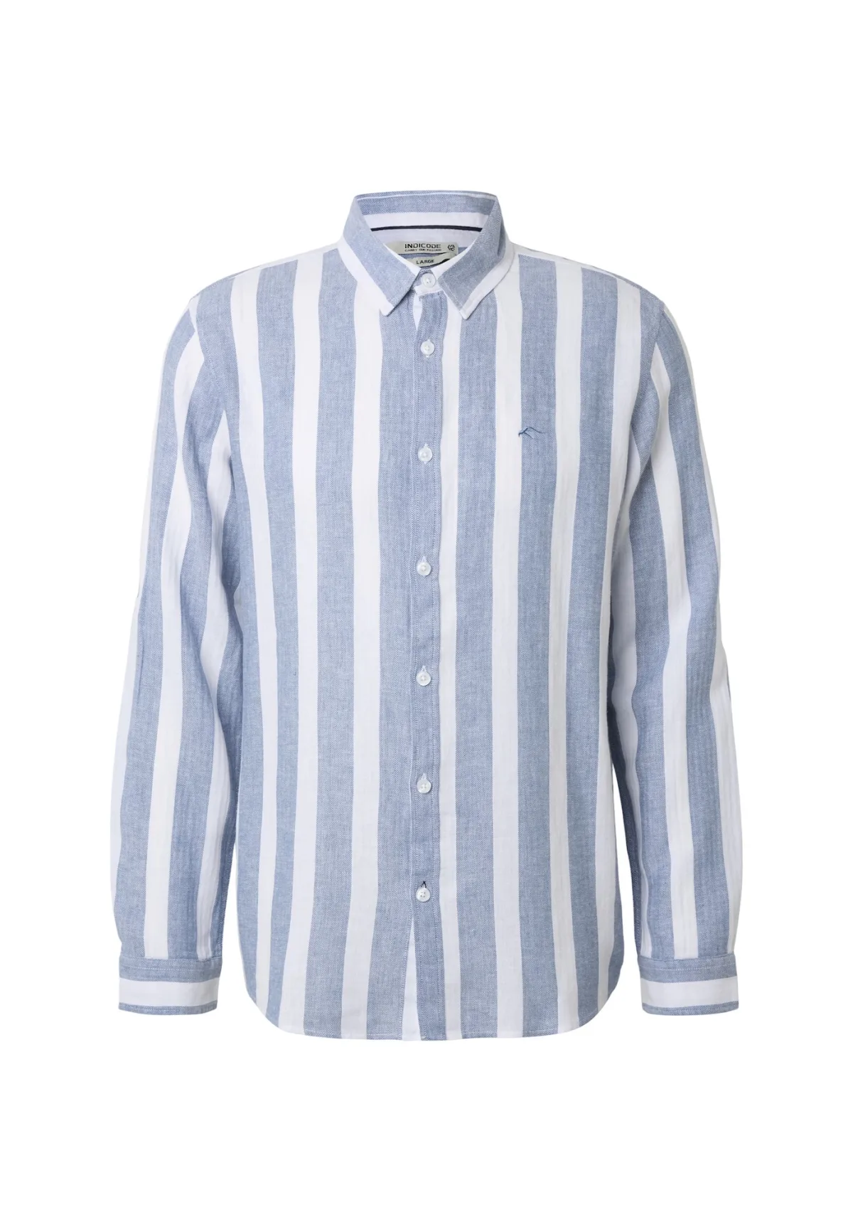 Design: 2-knoops manchetten; Type sluiting: Knoopsluiting; Materiaal: Linnen; Motief: Gestreept; Kraag: Kentkraag; Extra's: All-over patroon; Pasvorm: Regular fit; Armlengte: Lange mouw
