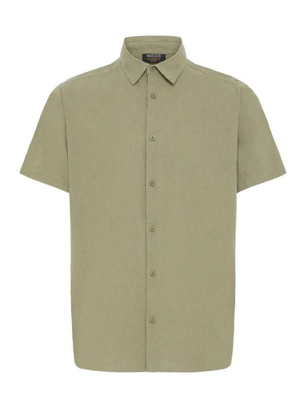 Design: Knop placket; Type sluiting: Knoopsluiting; Materiaal: Katoen, Linnen; Motief: Effen; Kraag: Kentkraag; Extra's: Lichte stof; Pasvorm: Regular fit; Armlengte: Kwartmouw