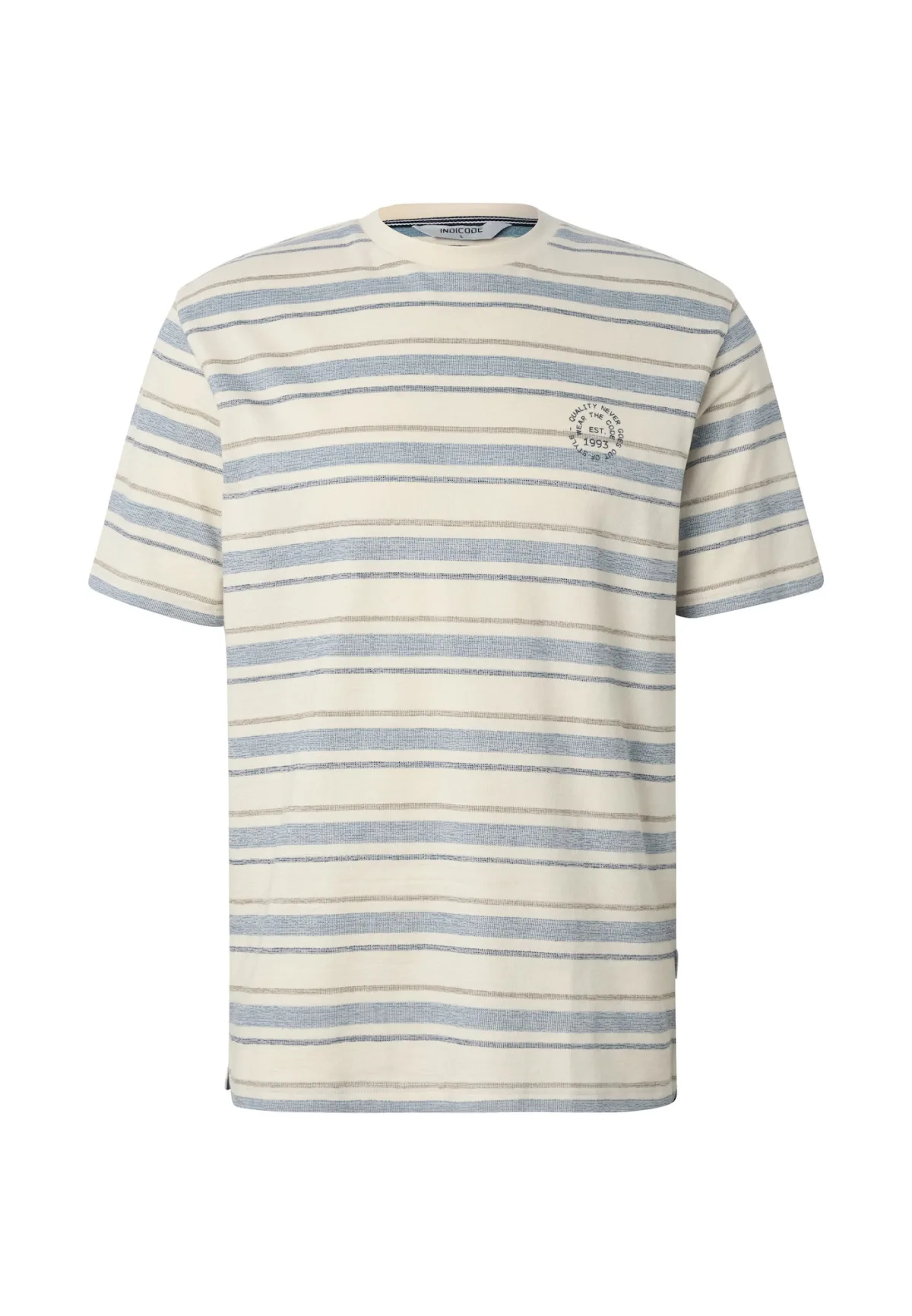 Specificaties: INDICODE JEANS Shirt ‘Eron’ ecru / duifblauw / bruin