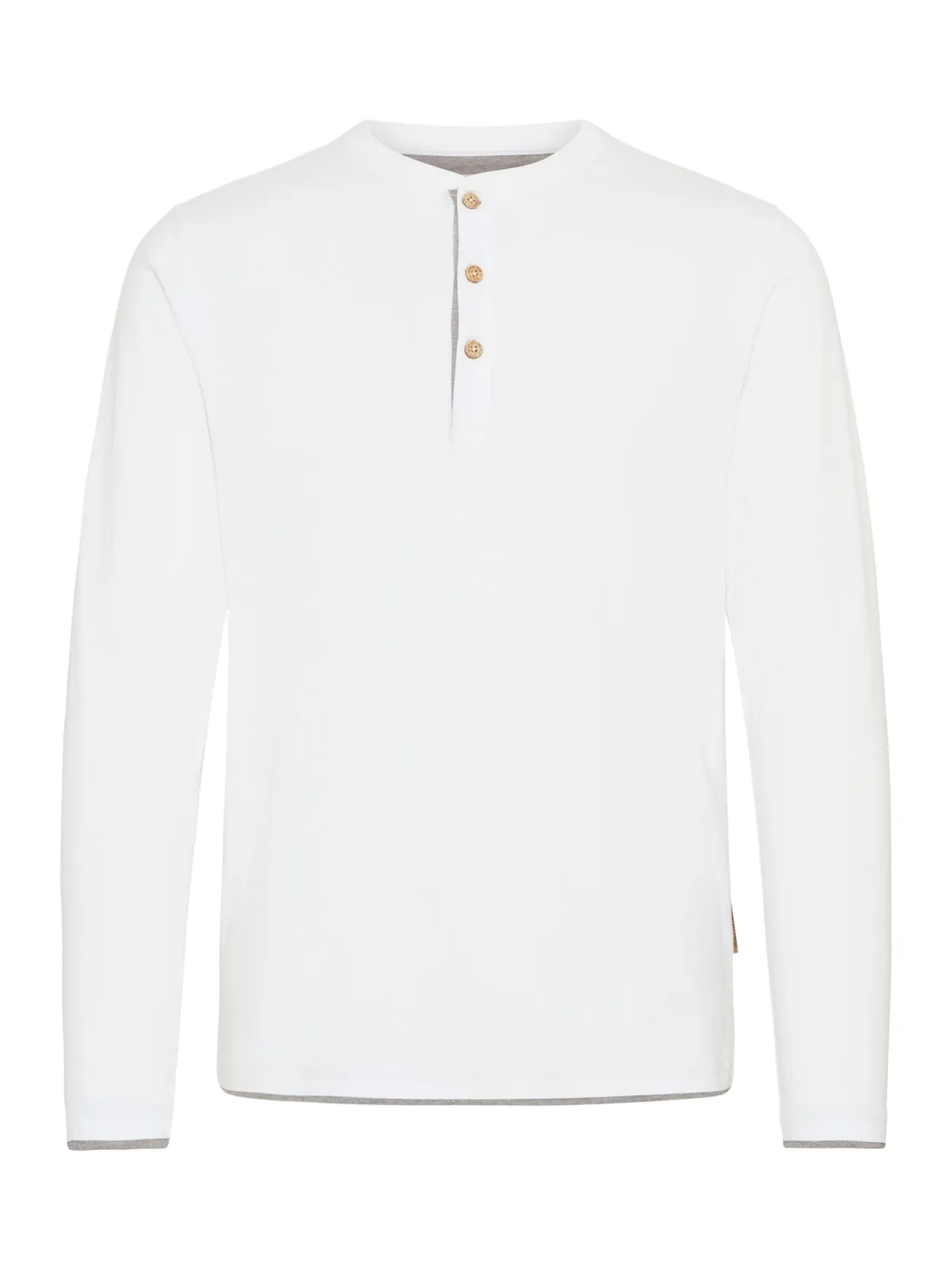 Design: Knop placket; Type sluiting: Knoopsluiting; Materiaal: Katoen; Halstype: Henley hals; Motief: Effen; Extra's: Label patch/label flag; Pasvorm: Normale pasvorm; Armlengte: Lange mouw; Lengte: Normale lengte