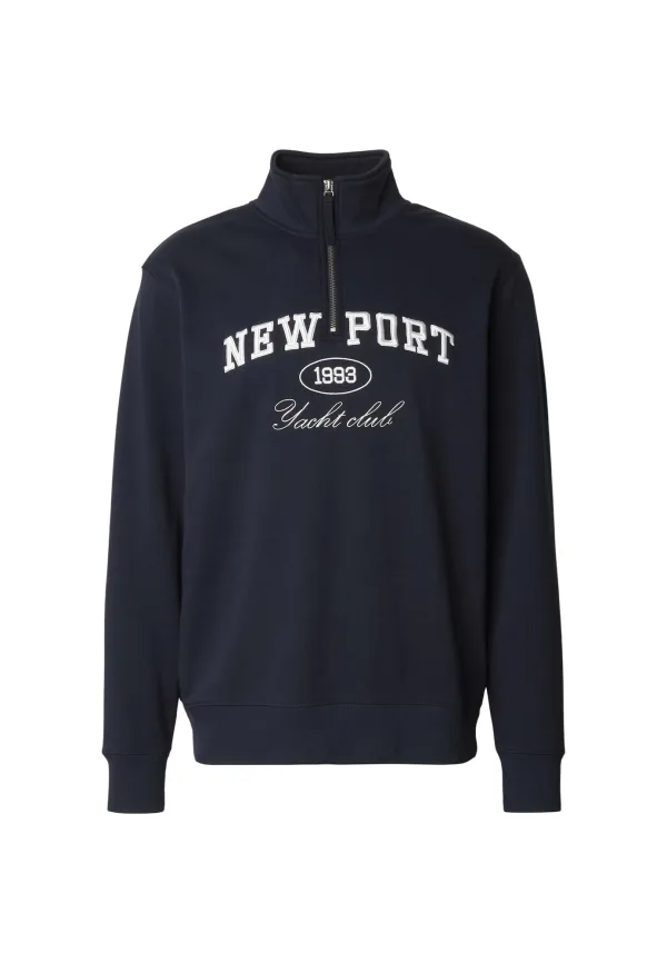 Design: Geribd ceintuurtje, Halve rits; Type sluiting: Ritssluiting; Materiaal: Sweatstof; Halstype: Schipperskraag; Motief: Tekst print; Extra's: Op staal naden, Voelt zacht aan; Pasvorm: Normale pasvorm; Armlengte: Lange mouw
