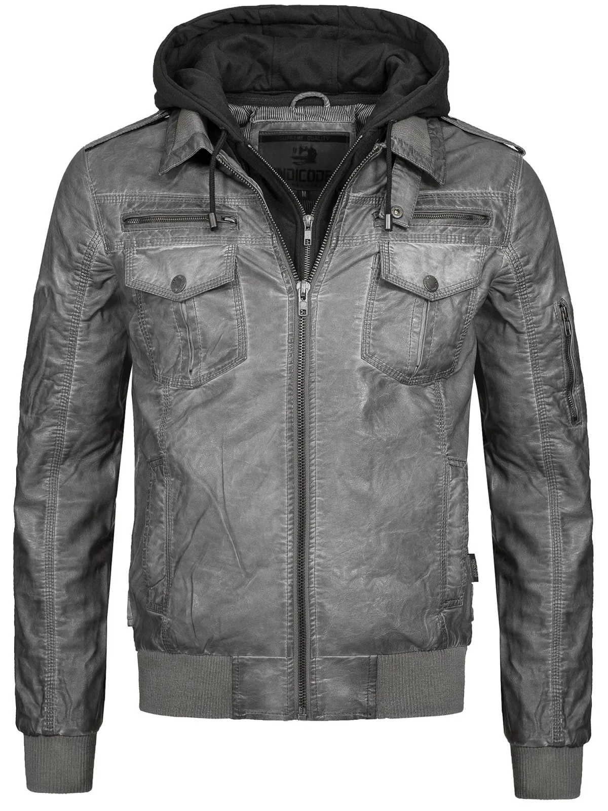 Design: Ritssluiting, Afneembare capuchon, Elastische taille/zoom, Gelaagde look, Geribd ceintuurtje, Borstzak, Binnenzak, Zakken aan de zijkant; Type sluiting: Ritssluiting; Type jas: Bikerjack; Voering: Licht gevoerd; Materiaal: Imitatieleder; Motief: Effen; Extra's: Pailletten, Reliëf structuur, Used-look; Pasvorm: Normale pasvorm