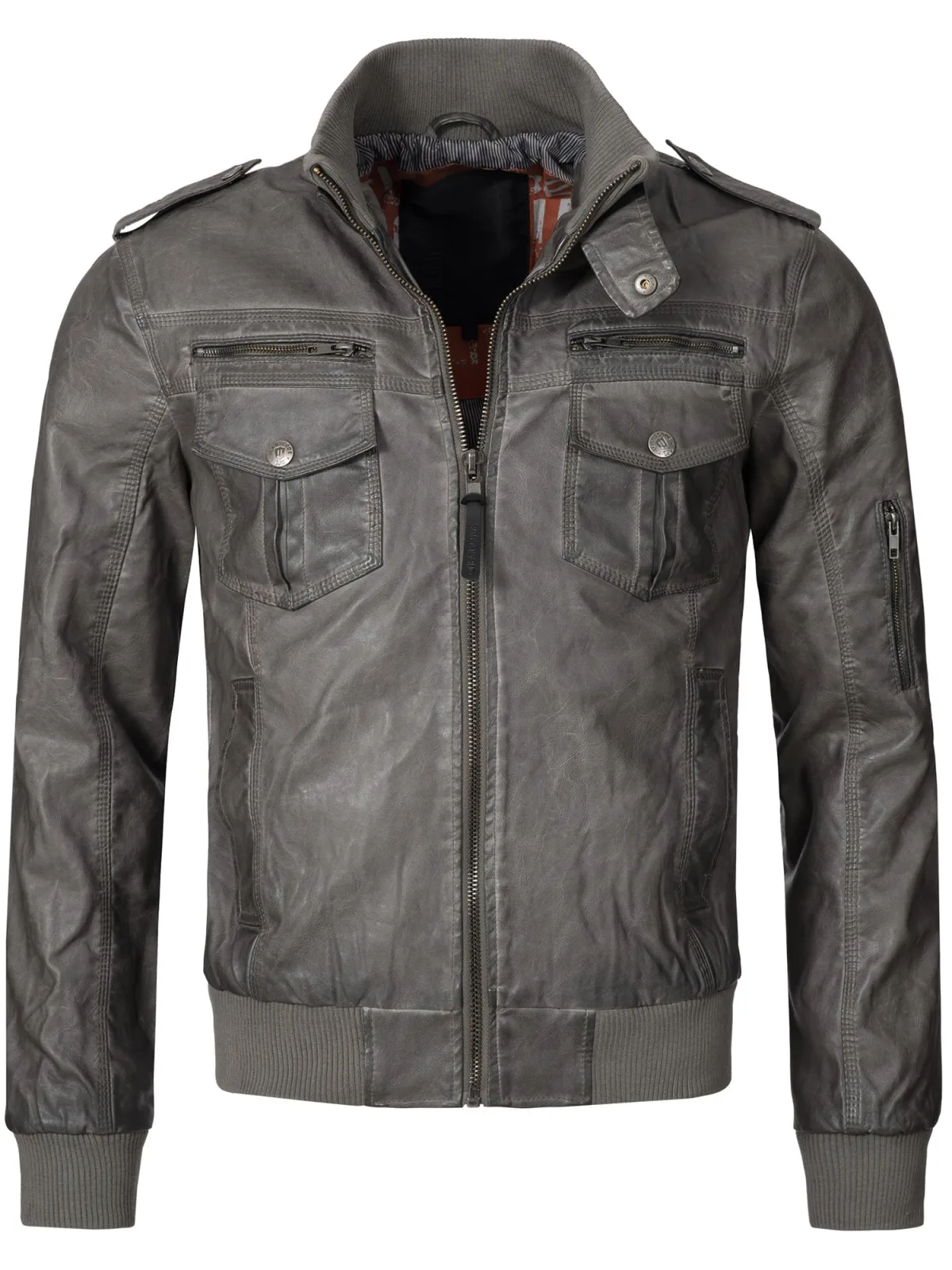 Design: Ritssluiting, Geribd ceintuurtje, Staande kraag, Opzet-/flapzak, Zakken aan de zijkant; Type jas: Bikerjack; Voering: Licht gevoerd; Motief: Effen; Extra's: Gladde stof; Pasvorm: Normale pasvorm