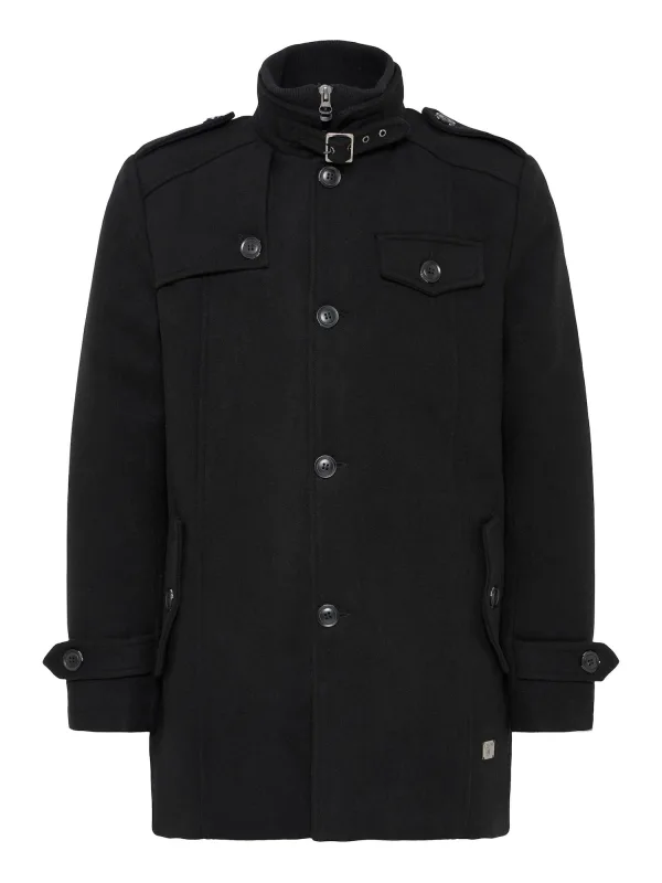 Type mantel: Klassieke mantel; Design: Knop placket, Staande kraag, Opzet-/flapzak; Type sluiting: Ritssluiting; Voering: Licht gevoerd; Materiaal: Wol; Motief: Effen; Pasvorm: Normale pasvorm; Lengte: Normale lengte