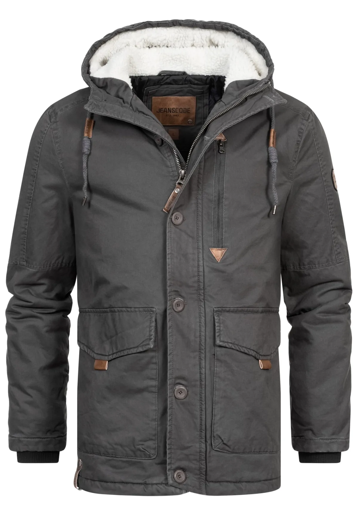 Specificaties: INDICODE JEANS Winterjas ‘ Crossing ‘ bruin / grijs