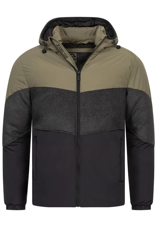 INDICODE JEANS Winterjas ‘Urban’ kaki / zwart