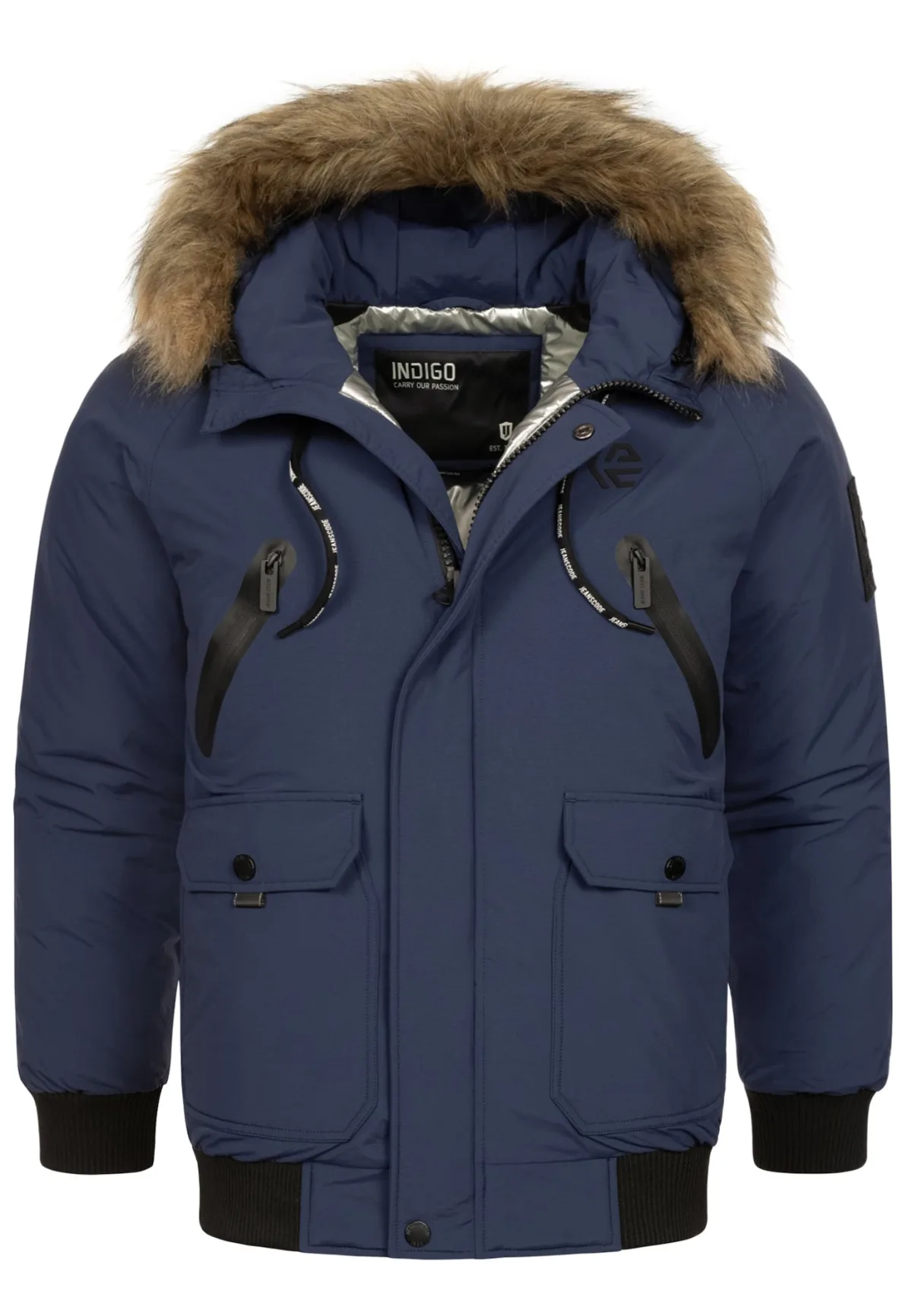 INDICODE JEANS Winterjas ‘ Zakai ‘ donkerbeige / blauw / zwart / wit