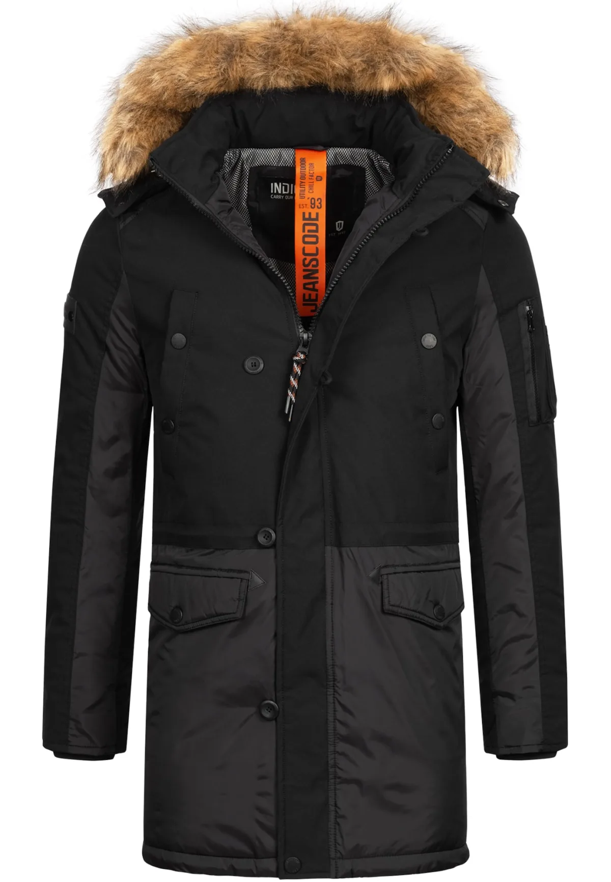 Specificaties: INDICODE JEANS Winterparka ‘Jarl’ lichtbruin / zwart