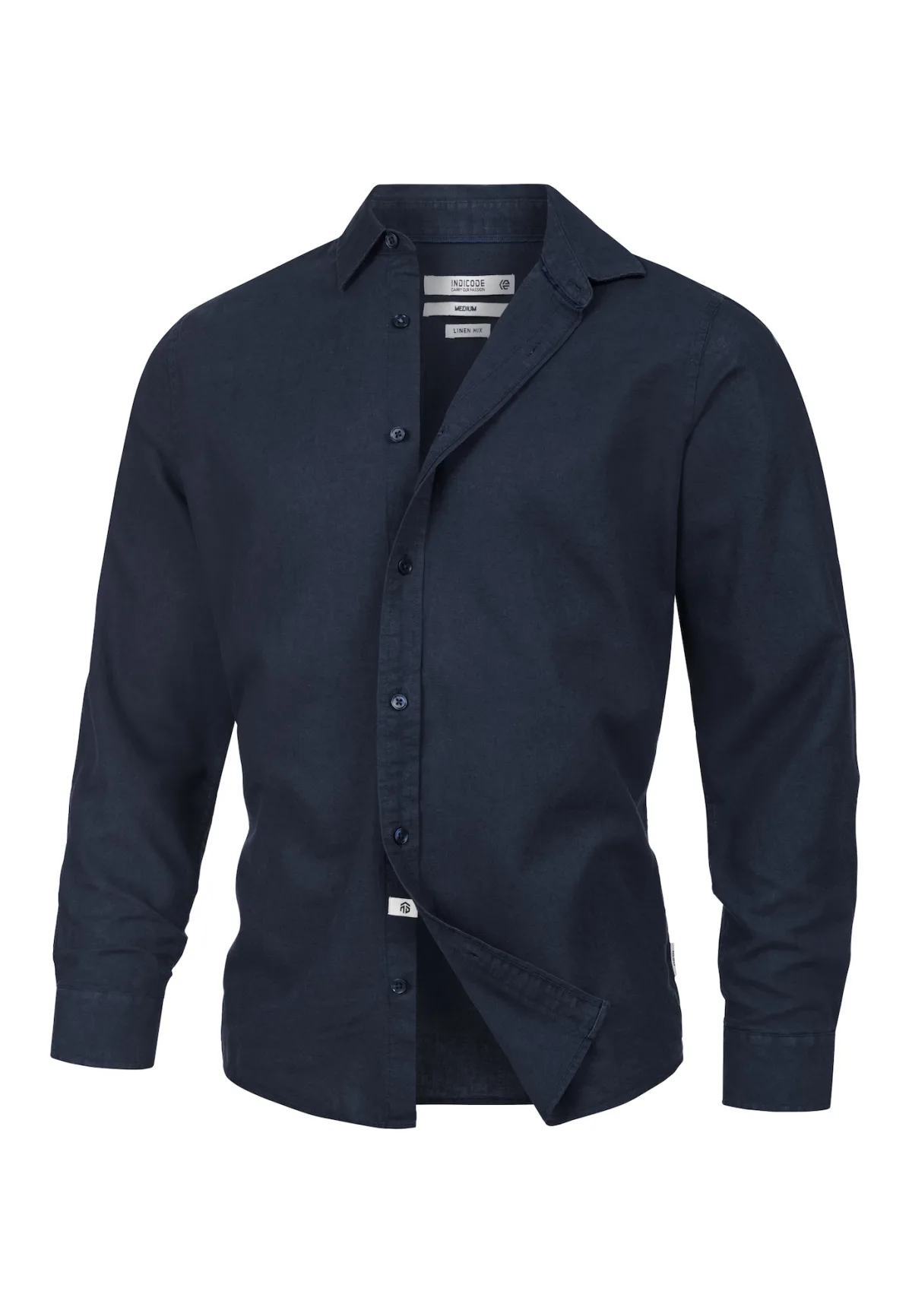 Design: Gevoerde zoom/rand, Knop placket; Type sluiting: Knoopsluiting; Materiaal: Linnen; Motief: Effen; Kraag: Kentkraag; Extra's: Op staal naden; Pasvorm: Normale pasvorm; Pasvorm: Regular fit; Armlengte: Lange mouw