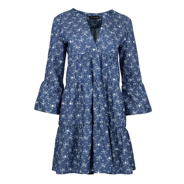 Indigo bloemen jurk met geplooide naden Prijzen