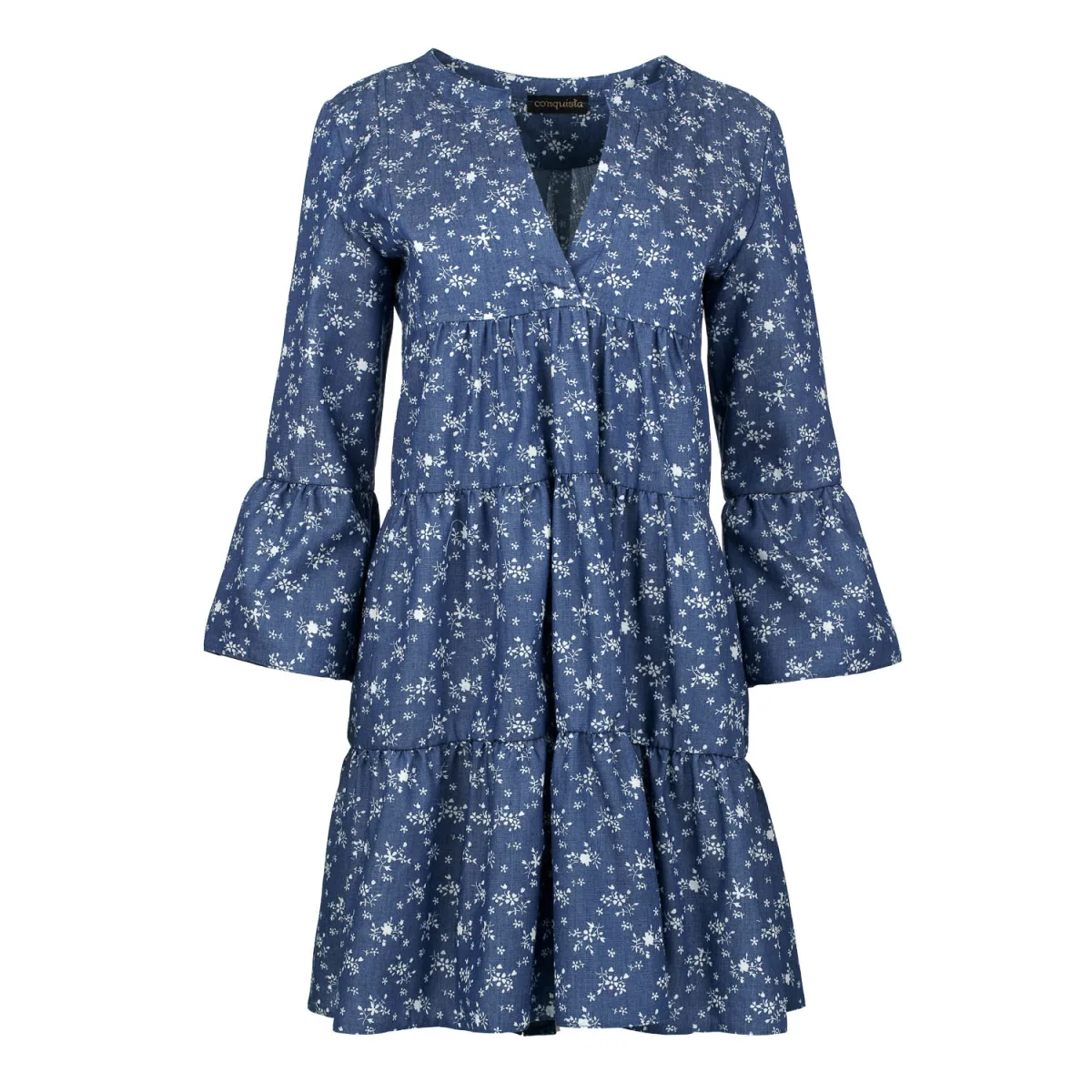 Specificaties: Indigo bloemen jurk met geplooide naden
