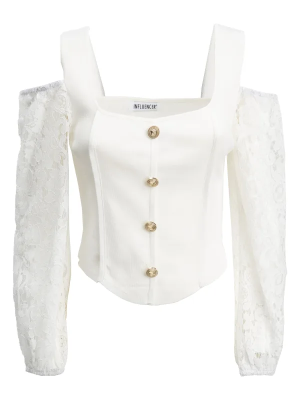 Blouse type: Blouseshirt; Design: Strapless/off-shoulder; Materiaal: Viscose; Motief: Effen; Kraag: Zonder kraag; Details: Kant; Extra's: Voelt zacht aan; Pasvorm: Slanke pasvorm; Armlengte: Driekwart mouw; Lengte: Korte pasvorm