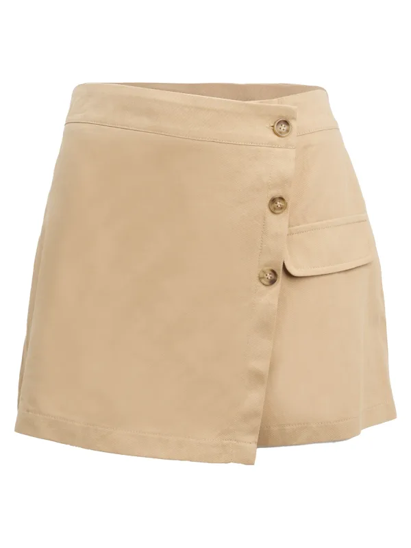 Design: Elastische taille/zoom; Type sluiting: Knoopsluiting; Materiaal: Katoen; Motief: Effen; Details: Wikkel design; Extra's: Voelt zacht aan; Lengte: Kort/mini; Pasvorm: Loosefit; Taillehoogte: Mid waist