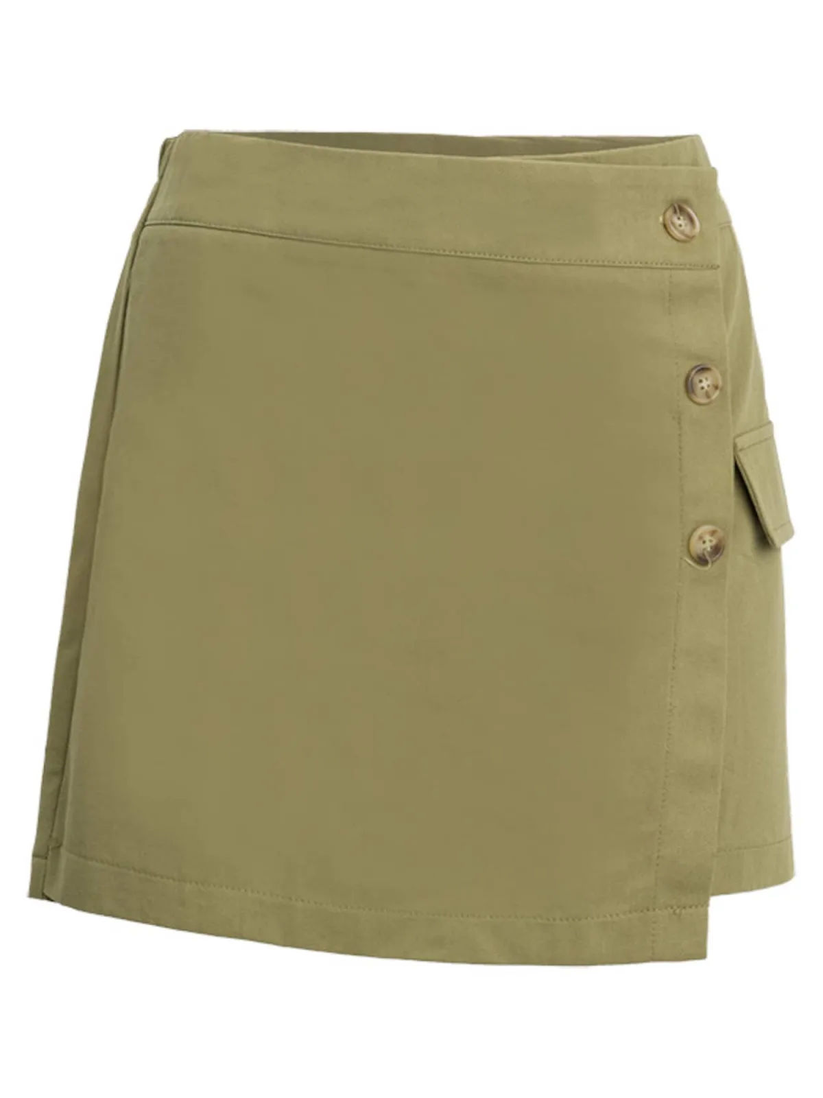 Design: Elastische taille/zoom; Type sluiting: Knoopsluiting; Materiaal: Katoen; Motief: Effen; Details: Wikkel design; Extra's: Voelt zacht aan; Lengte: Kort/mini; Pasvorm: Loosefit; Taillehoogte: Mid waist