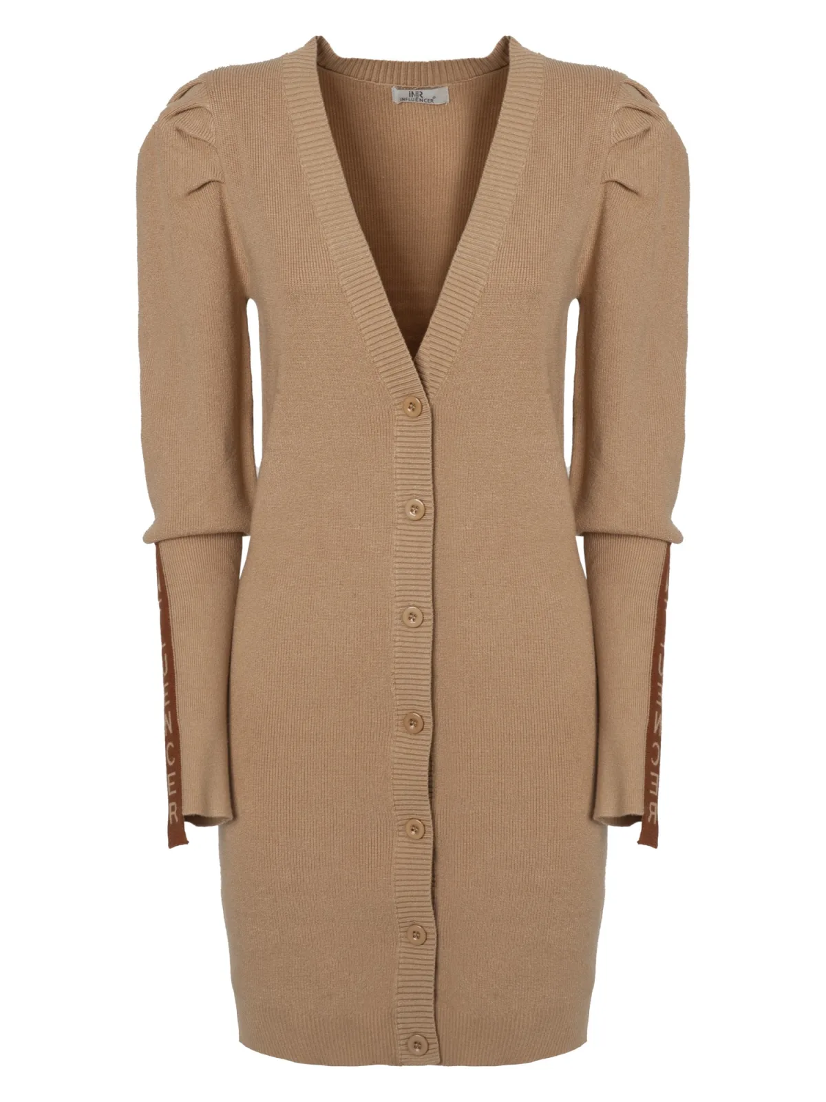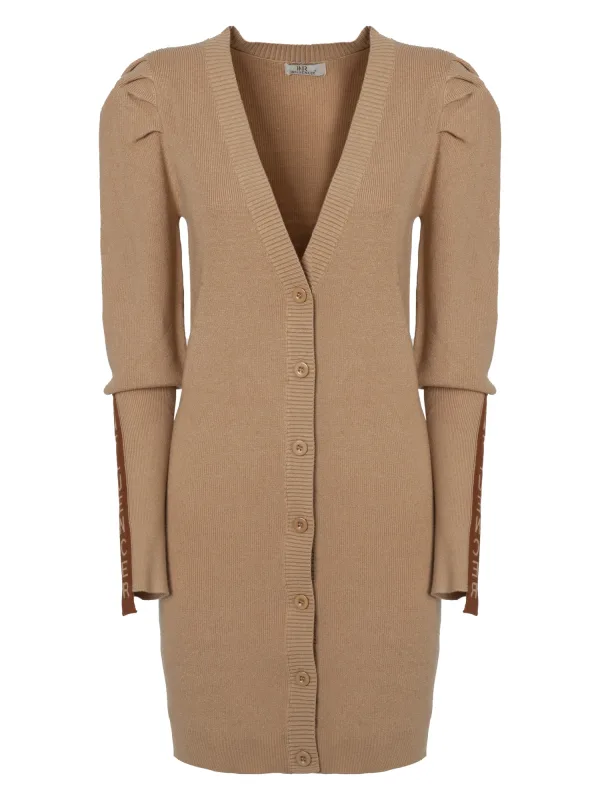 Design: Pofmouwen; Type sluiting: Knoopsluiting; Materiaal: Knitwear; Halstype: V-hals; Motief: Effen; Details: Plooien, Zijstrepen; Extra's: Voelt zacht aan, Label print; Pasvorm: Slanke pasvorm; Armlengte: Lange mouw; Lengte: Lange pasvorm