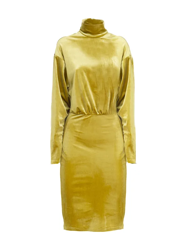 Design: Vleermuismouwen, Rug rits; Materiaal: Fluweel/Nicky Velours; Halstype: Col; Motief: Effen; Extra's: Op staal naden, Voelt zacht aan; Lengte: Knielengte; Pasvorm: Slanke pasvorm; Armlengte: Lange mouw