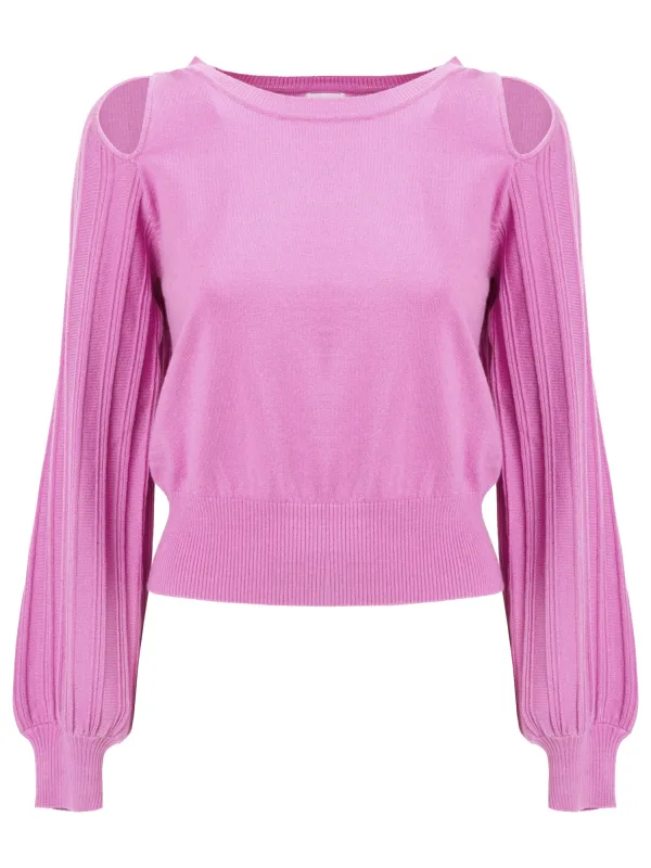 Design: Pofmouwen; Type sluiting: Gesloten; Materiaal: Knitwear; Halstype: Boothals; Motief: Effen; Details: Cut-outs; Pasvorm: Slanke pasvorm; Armlengte: Lange mouw; Lengte: Normale lengte