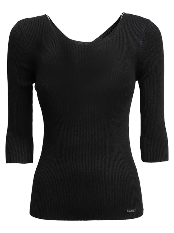Design: Geribbeld gebreid; Materiaal: Knitwear; Halstype: Boothals; Motief: Effen; Details: Cut-outs; Extra's: Voelt zacht aan; Pasvorm: Slanke pasvorm; Armlengte: Driekwart mouw; Lengte: Normale lengte