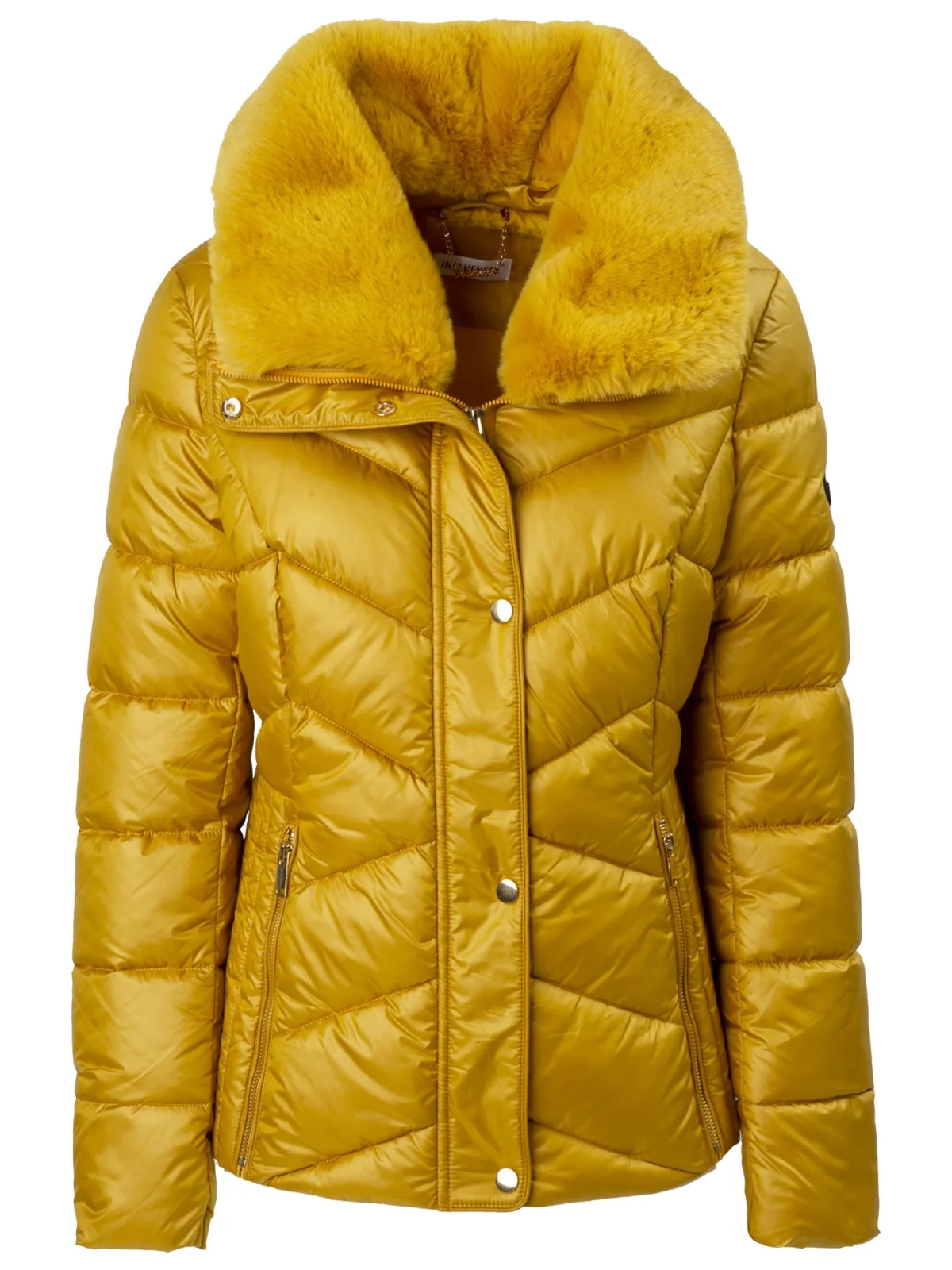 Design: Ritszakken aan de zijkant; Type sluiting: Ritssluiting; Type jas: Gewatteerde jas; Voering: Warm gevoerd; Motief: Effen; Extra's: Stiksels, Op staal naden, Met faux bont trim; Pasvorm: Slanke pasvorm