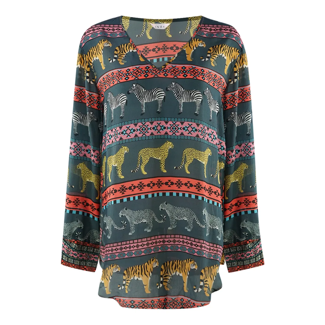 Pronk met je stijl met het Inoa Gray -shirt. De flatterende print maakt het een tijdloos stuk voor je garderobe. Gemaakt van luxueuze stof, je maakt een statement met elke slijtage. Maak een verklaring in stijl! 100% zijde, grijs dierontwerp lange mouw, vis top Dit item is geschikt voor maten uk 8- uk 14 Productstijl: Masari Mara 1202110