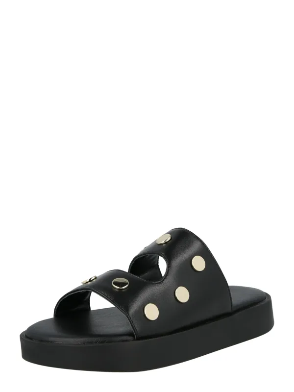 Design: Gevoerd, Profielzolen; Materiaal: Leer; Motief: Effen; Materiaal: Glad leer; Schoenneus: Open toe; Extra's: Studs, Flexibele zool; Hakhoogte: Platte hak (0-3 cm)