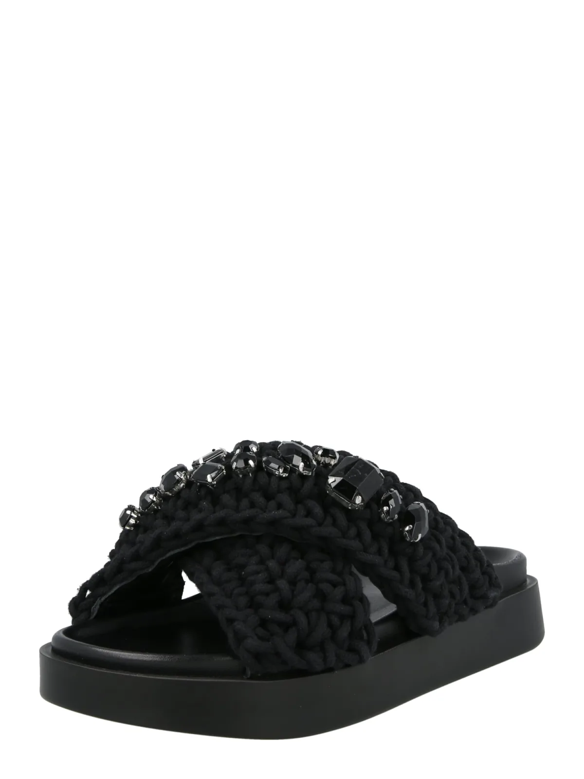 Design: Anatomisch gevormd voetbed; Type sluiting: Slip; Motief: Effen; Materiaal: Textiel; Schoenneus: Open toe; Extra's: Met halfedelstenen, Glitterend, Flexibele zool; Hakhoogte: Platte hak (0-3 cm)