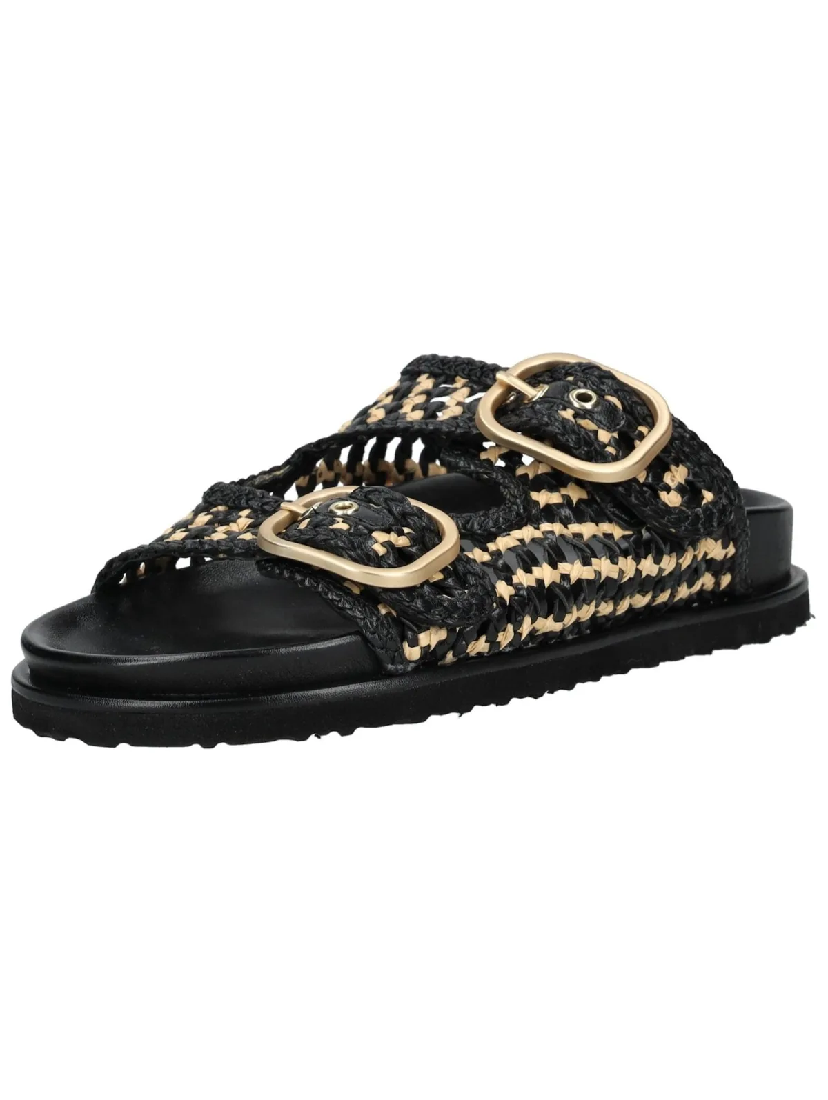 Design: Anatomisch gevormd voetbed, Profielzolen, Gespsluiting; Type sluiting: Slip; Materiaal: Leer; Materiaal: Glad leer; Schoenneus: Open toe; Extra's: Gevlochten structuur, Flexibele zool, Wijdte verstelbaar; Hakhoogte: Middelhoge hak (3-7 cm)