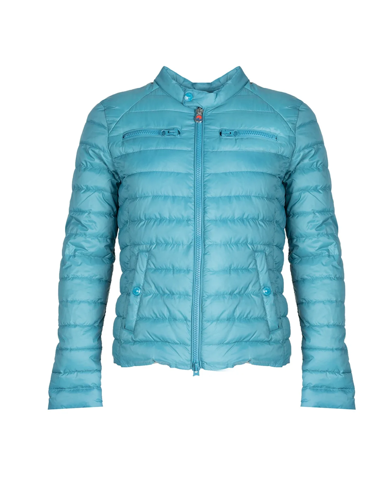 Eenvoudige snit Opstaande kraag Dubbele ritssluiting Gewatteerd, met stiksels Vier voorzakken met rits Mouwen en kraag kunnen worden vastgemaakt met merk drukknopen Bedrijfslogo op de linkerschouder Licht gevoerd met synthetische veren Gemaakt van hoogwaardige stof