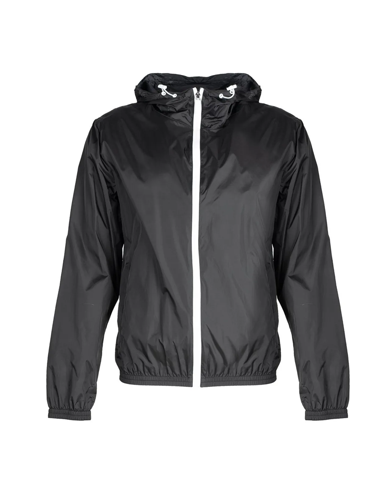 Eenvoudige pasvorm Kan worden gesloten met een rits Met capuchon Kap met verstelbare koorden Met voering Twee afsluitbare zakken aan de voorkant Bedrijfslogo op de linkermouw Omgeslagen zoom en mouwen Ingesloten opbergzak Gemaakt van hoogwaardige stof