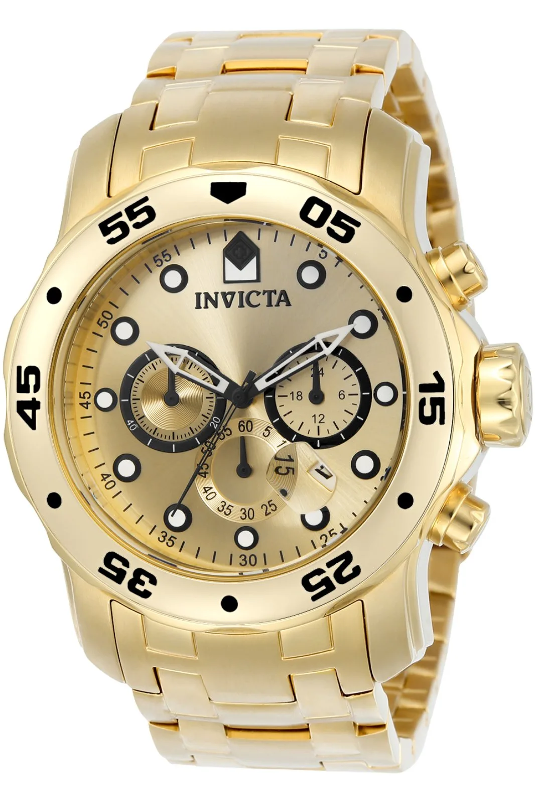 De Invicta 0074 heeft een 48 millimeter roestvrijstalen kast met een gouden wijzerplaat. Dit model wordt aangedreven door een nauwkeurige kwartsbeweging. 20 bar waterdrukbestendig. Dit model maakt deel uit van de Invicta Pro Diver - SCUBA collectie. Inclusief 2-jarige Invicta garantie.