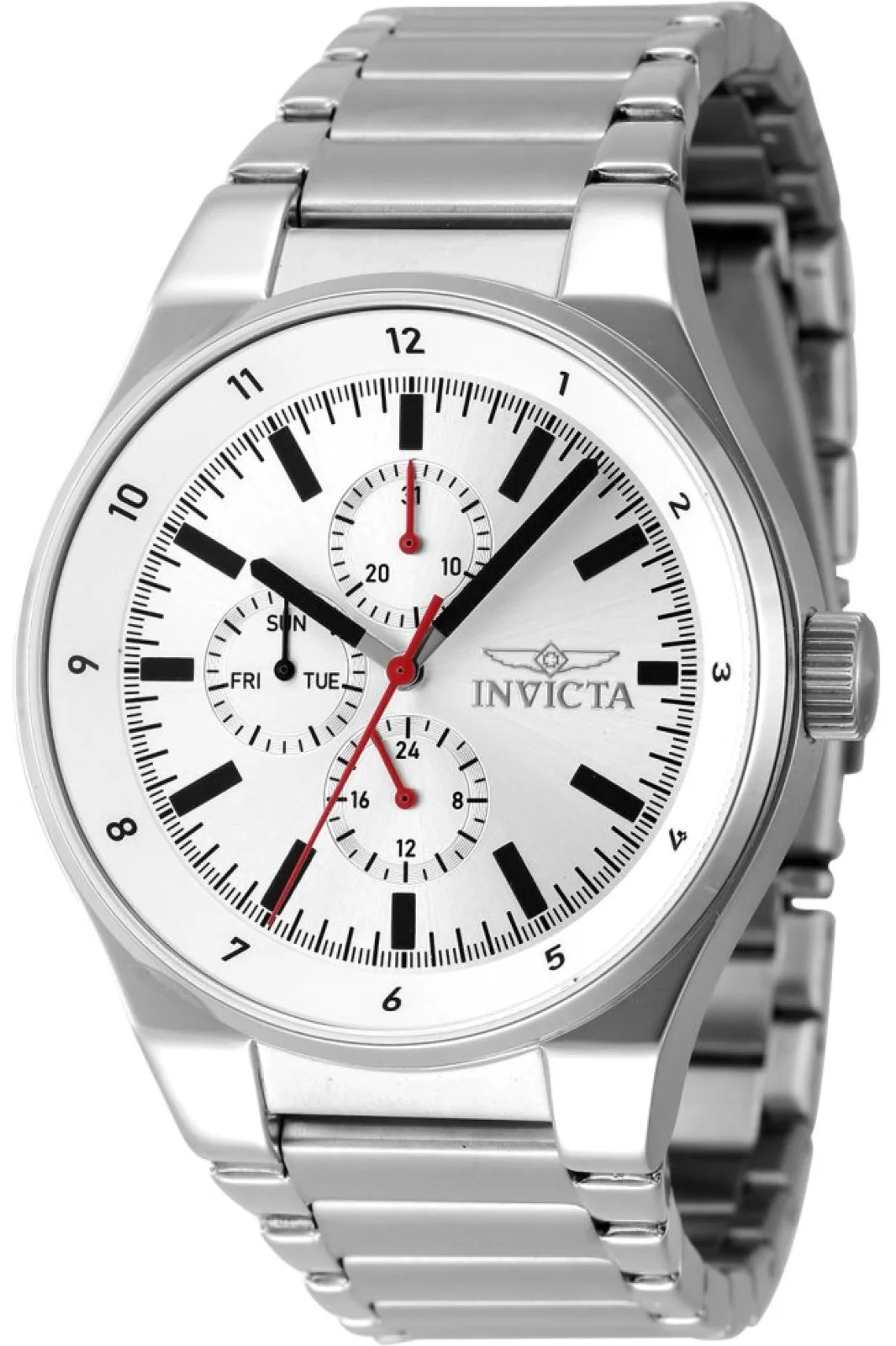 De Invicta 47546 heeft een roestvrijstalen horlogekast van 44 millimeter met een zilveren wijzerplaat. Dit model wordt aangedreven door een accuraat Quartz uurwerk. 5 bar waterdicht. Dit model is onderdeel van de Invicta Racing collectie. Inclusief 2 jaar garantie.