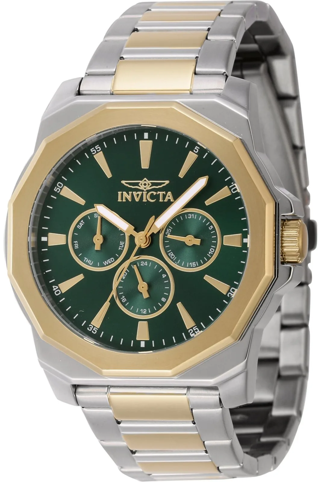 De Invicta 46847 heeft een roestvrijstalen horlogekast van 42 millimeter met een groene wijzerplaat. Dit model wordt aangedreven door een accuraat Quartz uurwerk. 3 bar waterdicht. Dit model is onderdeel van de Invicta Speedway collectie. Inclusief 2 jaar garantie.