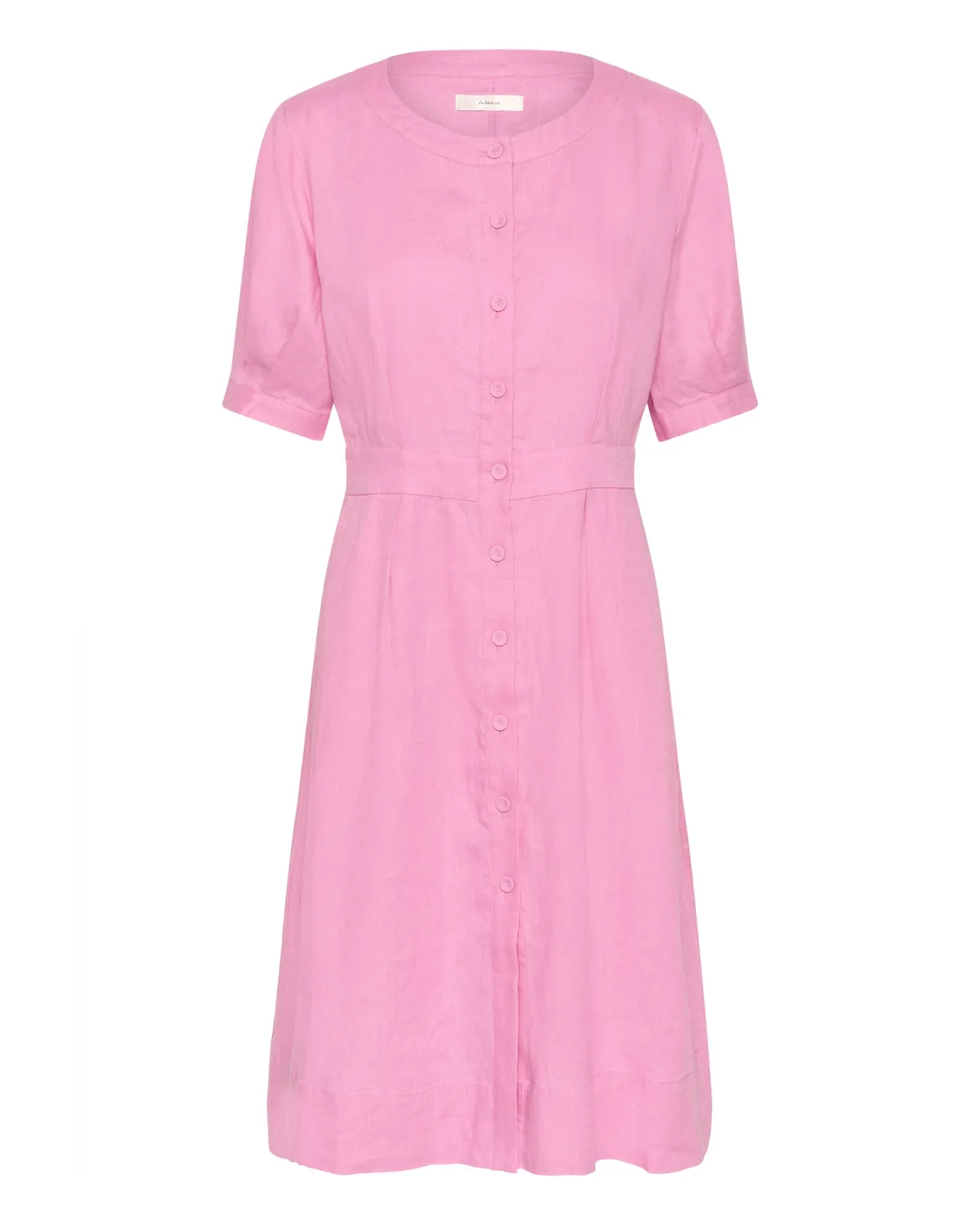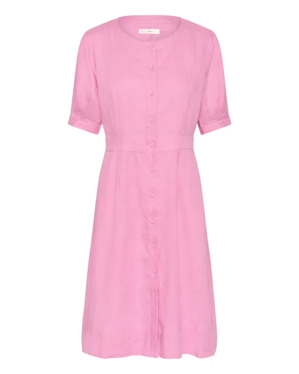 Design: Zakken aan de zijkant; Type sluiting: Knoopsluiting; Materiaal: Linnen; Halstype: Ronde hals; Motief: Effen; Kraag: Zonder kraag; Details: Plooien; Extra's: Op staal naden; Lengte: Knielengte; Pasvorm: Normale pasvorm; Armlengte: Halve mouw