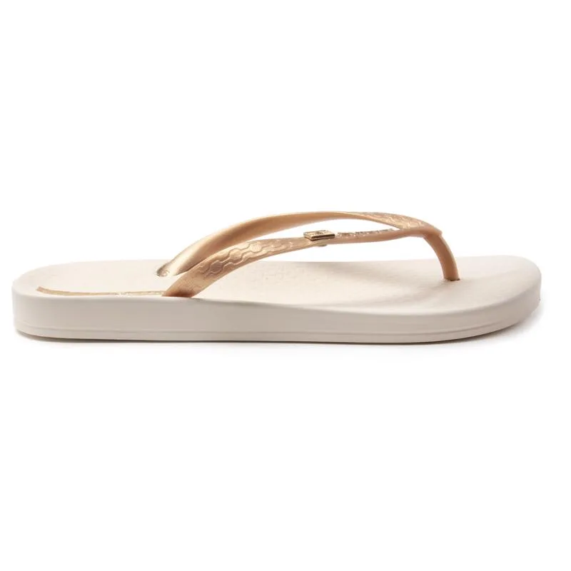 Dames gouden Ipanema anatomische sandalen, vervaardigd van rubber met een rubberen zool. Kenmerken: gemaakt in Brazilië, merknaam op de band, valt normaal, milieuvriendelijk product en 100% veganistisch.