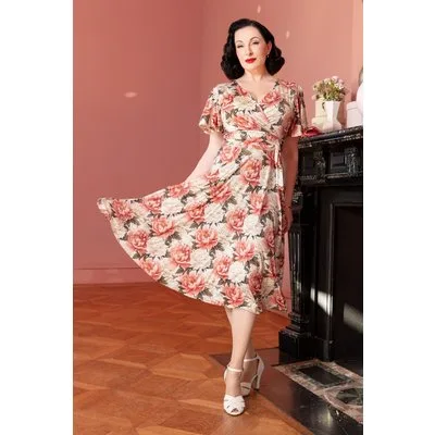 Irene Floral overslag swing jurk in crème en roze Prijzen