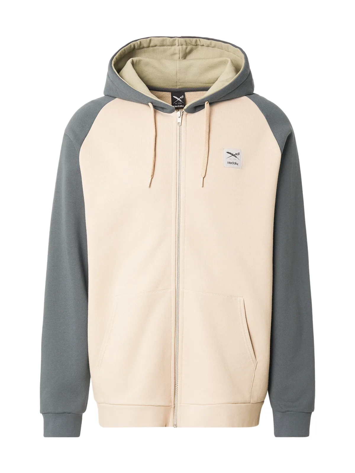 Iriedaily Sweatvest 'De College 2' ecru / basaltgrijs